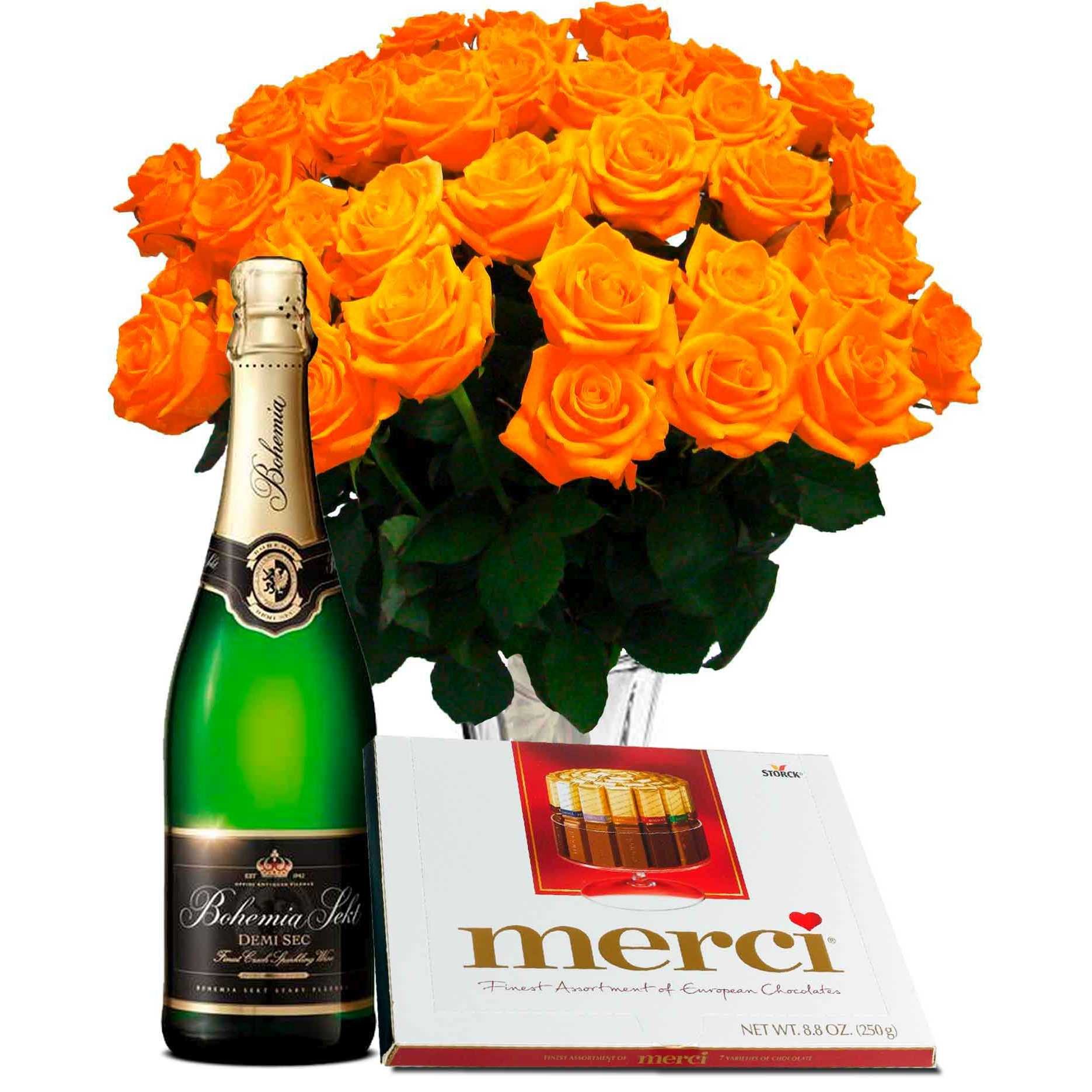 25 rosen, schokolade merci, bohemia halbtrockener sekt